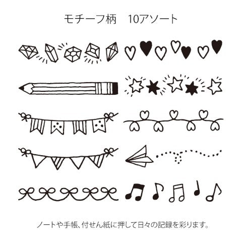 These stamps are a fun and easy way to decorate your stationery—just stamp the page and color in the stamp with water-based markers. The stamps are specially designed so that they won’t smudge when colored. Replaceable ink pad included.