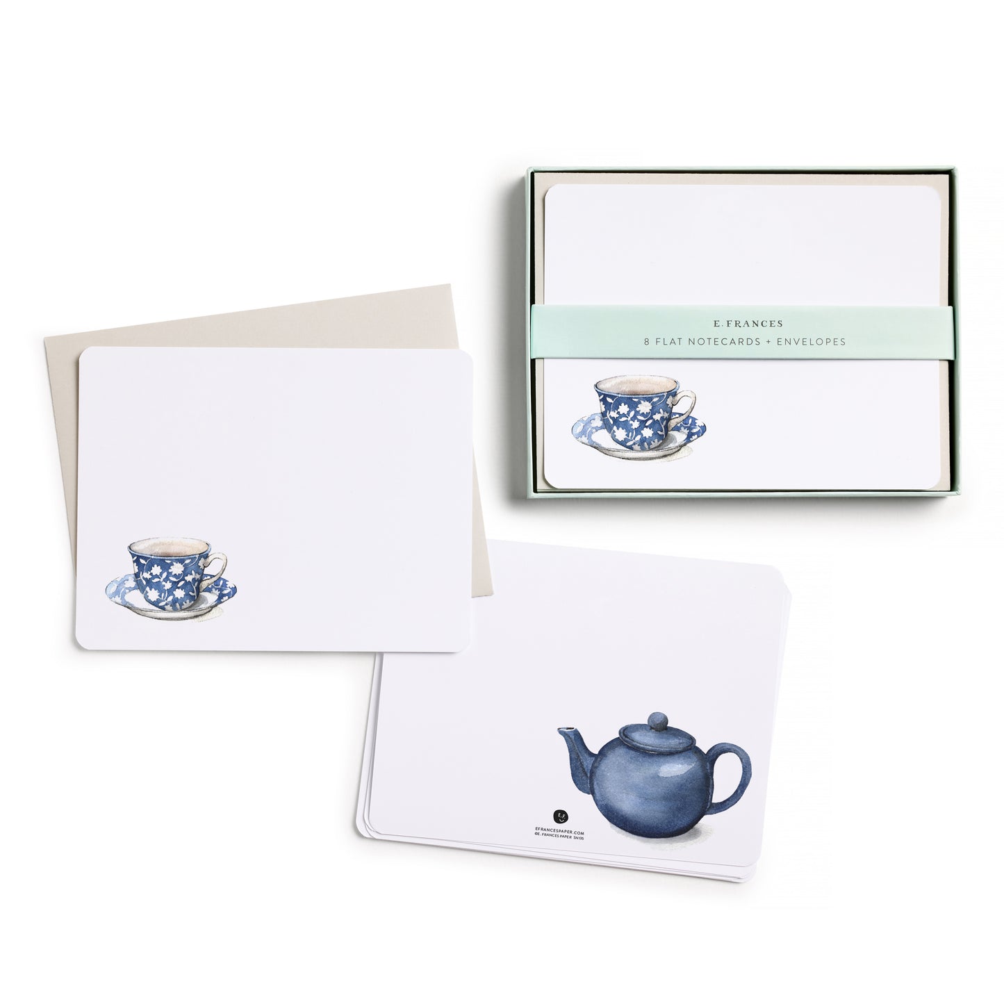 A set of 8 adorable notecards and envelopes, each with a fun illustrated back to add a touch of fun. A flat note is concise, smart. Not ostentatious, but clever. Just enough room to be well-edited. Beautiful watercolor notecards ready for your thoughtful words.