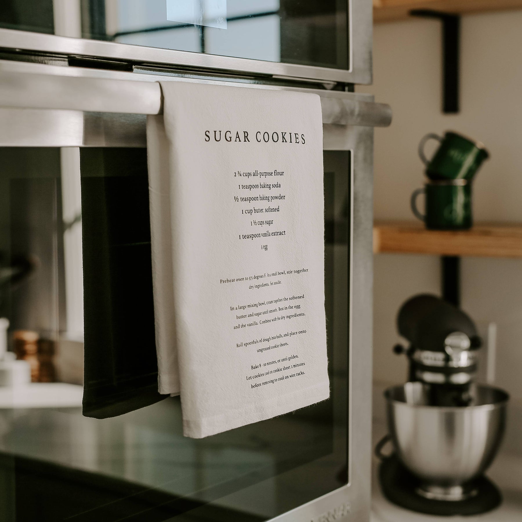 100% cotton cream tea towel with sugar cookie recipe.