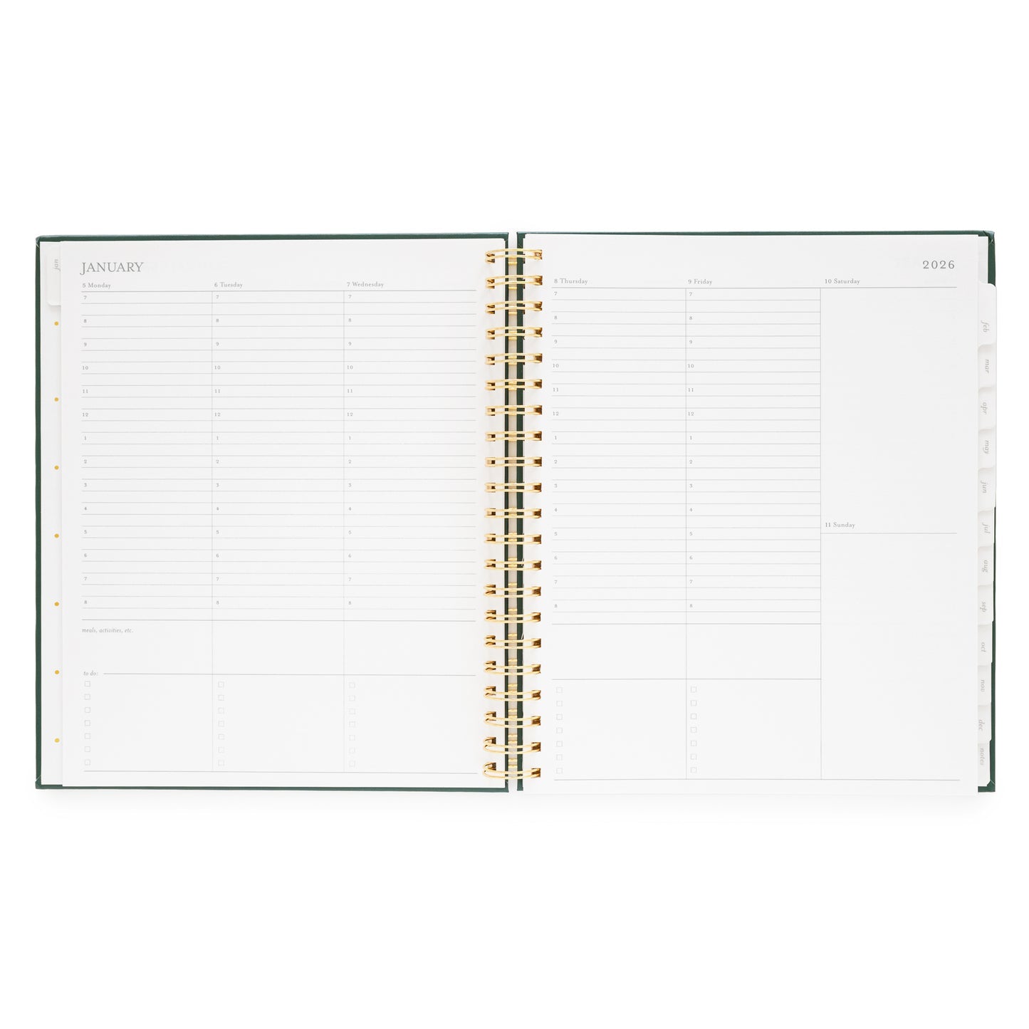 A busy life is a beautiful one. The Large Weekly Spiral Planner lets you manage each hour of your day with extra-large pages, a convenient weekly layout, and plenty of space for you and your family’s activities. All bound in a large spiral format with a flexible cover that leaves room for…everything.