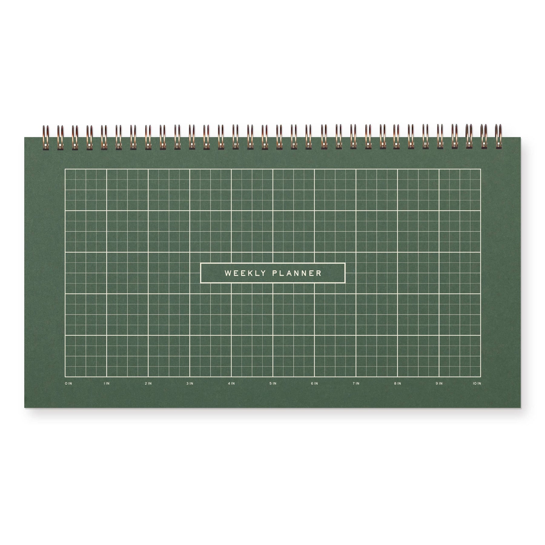 A straight-forward undated desktop planner lets you be in control to check off tasks and keep notes, one week at a time. The grid cover even has a functioning ruler, just to ensure you've got everything in line. Now plan away!