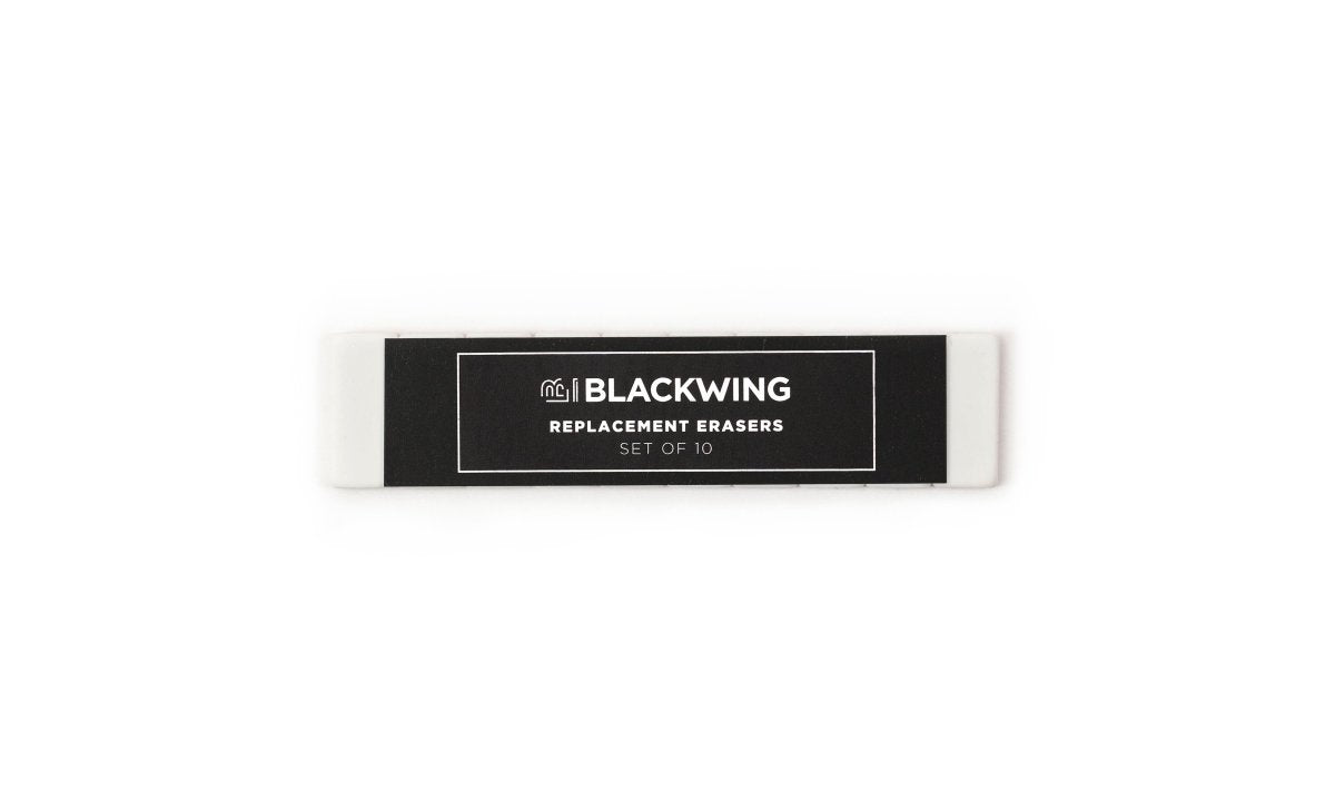 For use with the Blackwing eraser holder. To replace eraser, slide the eraser and clip out of the ferrule, remove the clip from the old eraser, place the new eraser into the clip, and insert the new eraser and clip into the ferrule. Choose Sand eraser to erase colored pencils.