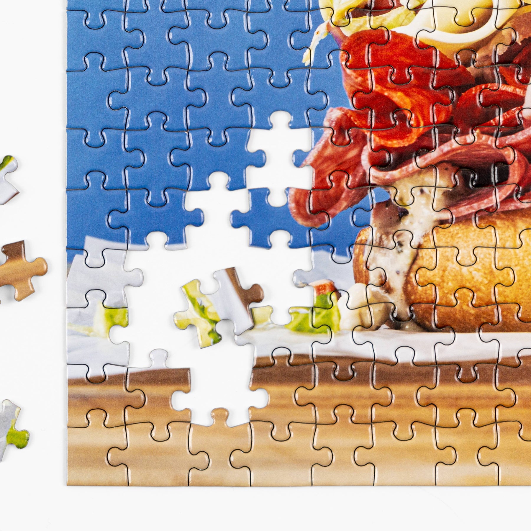 Call it a hoagie, call it a grinder, call it a sub—whichever way you slice it (or stuff it), nothing beats a world-class Italian sandwich. This sumptuous sandwich, star of New York Times bestselling author Dan Pelosi's cookbook, Let's Eat, is layered with salami, pepperoni, capicola, prosciutto, provolone, then topped with lots of fixins (don't forget the shredded lettuce!) and all the condiments. It presents a delicious solving experience and, once completed, a display worthy of any deli counter showcase! Includes complete recipe from Dan Pelosi to make your own big Italian Sandwich!